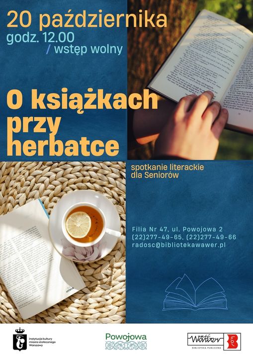 Serdecznie zapraszamy do biblioteki w Radości na spotkanie literackie z cyklu „O książkach przy herbatce”. Gwarantujemy miłą atmosferę i dużo dobrej literatury. I herbatkę, oczywiście🙂