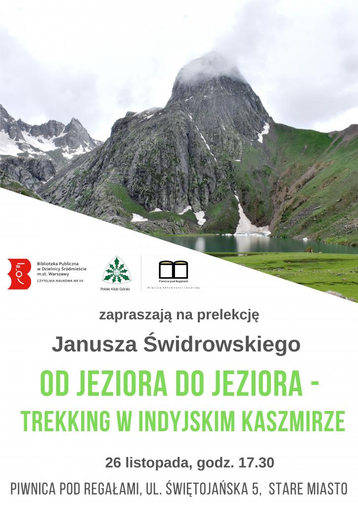 Zapraszamy we wtorek 26 listopada o godzinie 17:30 do Piwnicy pod Regałami na prelekcję Janusza Świdrowskiego pt. „Od jeziora do jeziora – trekking w indyjskim Kaszmirze”.