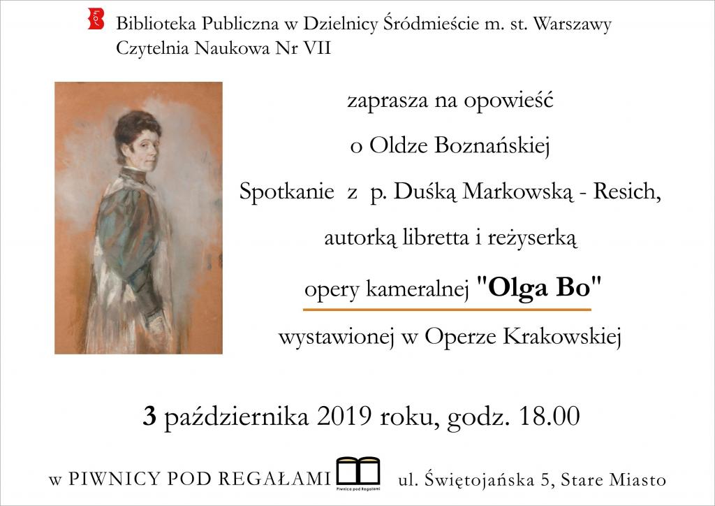 Zapraszamy na „Opowieść o Oldze Boznańskiej” – spotkanie z p. Duśką Markowską-Resich, autorką libretta i reżyserką opery kameralnej „Olga Bo”, wystawionej w Operze Krakowskiej.