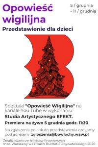 Już dziś zapraszamy do obejrzenia wyjątkowego spektaklu zatytułowanego „Opowieść Wigilijna” w wykonaniu Studio Artystyczne Efekt.
