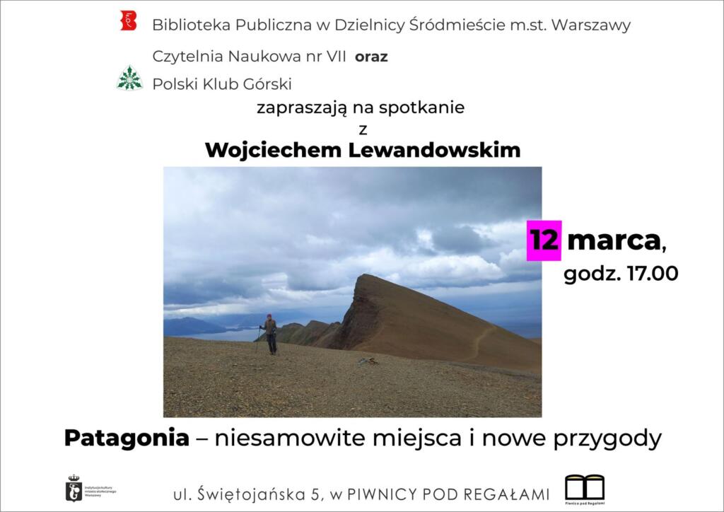 Czytelnia Naukowa Nr VII oraz Polski Klub Górski zapraszają 12 marca o godzinie 17:00 na spotkanie z Wojciechem Lewandowskim. Tematem będzie „Patagonia – niesamowite miejsca i nowe przygody”.