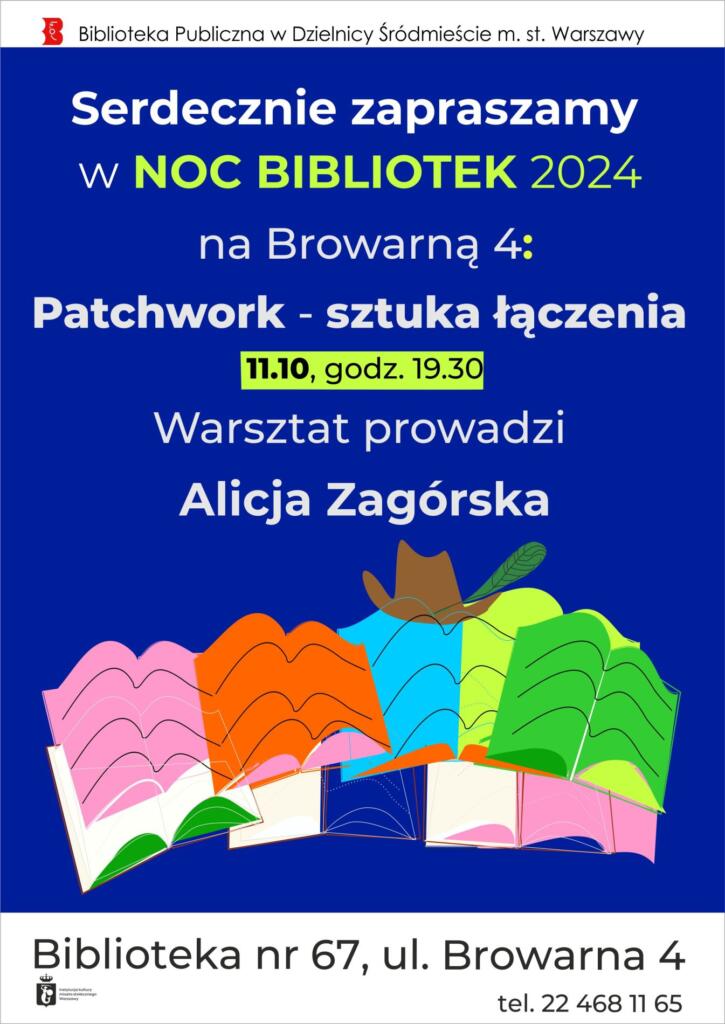 Serdecznie zapraszamy w Noc Bibliotek na ul. Browarną 4 na warsztaty pt. „Patchwork – sztuka łączenia”.