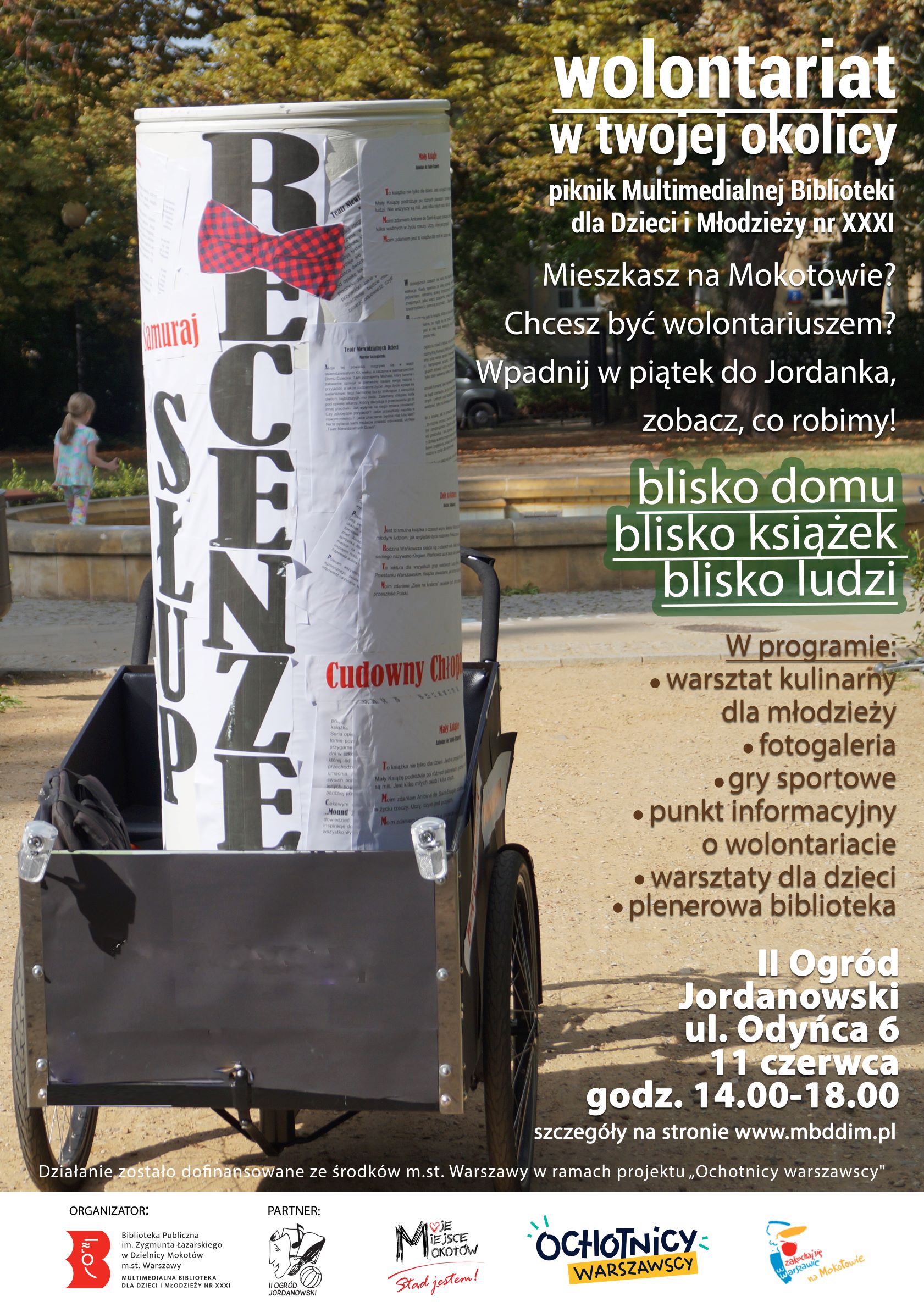 „WOLONTARIAT W TWOJEJ OKOLICY” to piknik Multimedialnej Biblioteki dla Dzieci i Młodzieży nr XXXI realizowany w II Ogrodzie Jordanowskim.