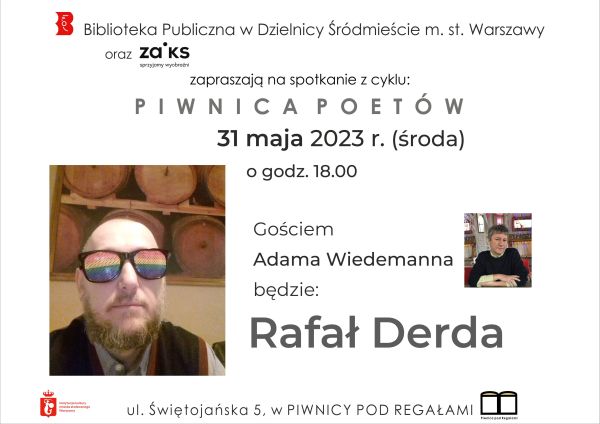 31 maja (środa) o godzinie 18:00 odbędzie się spotkanie z cyklu „Piwnica Poetów”.
