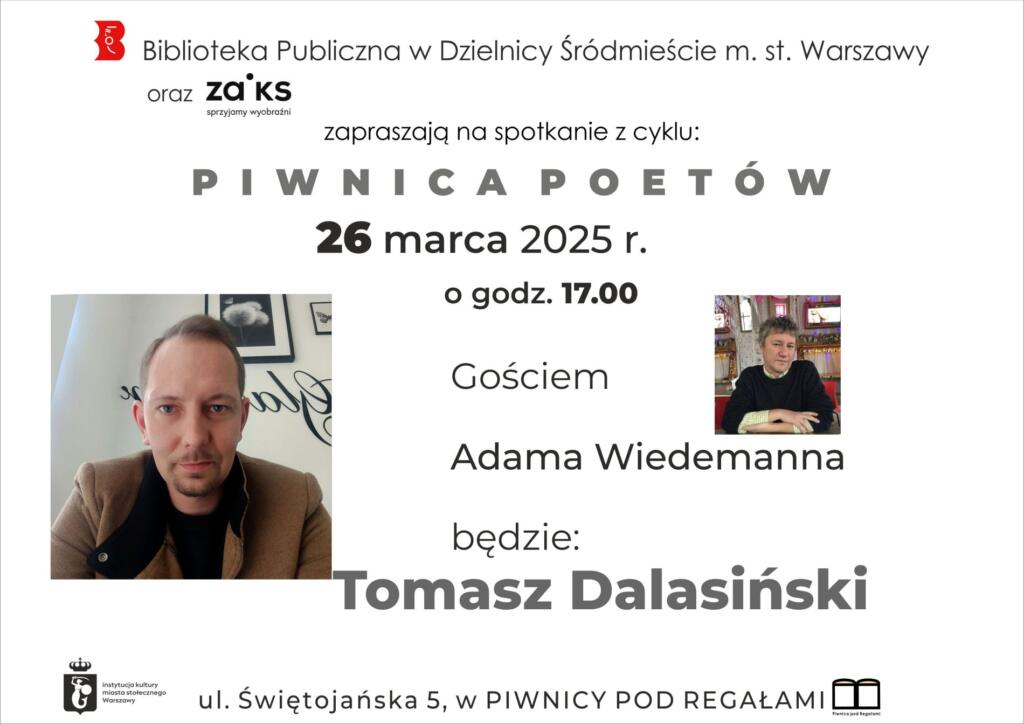 Cykl „Piwnica Poetów” jest realizowany dzięki dotacji ZAiKS przez Czytelnię Naukową Nr VII Biblioteki Publicznej w Dzielnicy Śródmieście