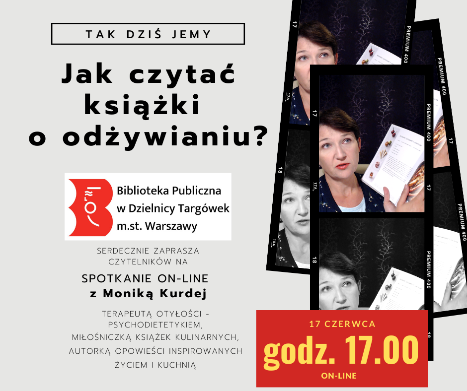 Serdecznie zapraszamy 17 czerwca o godzinie 17.00 na spotkanie on-line. Gościem Biblioteki będzie Monika Kurdej, terapeuta otyłości, psychodietetyk, miłośniczka literatury oraz książek kulinarnych.