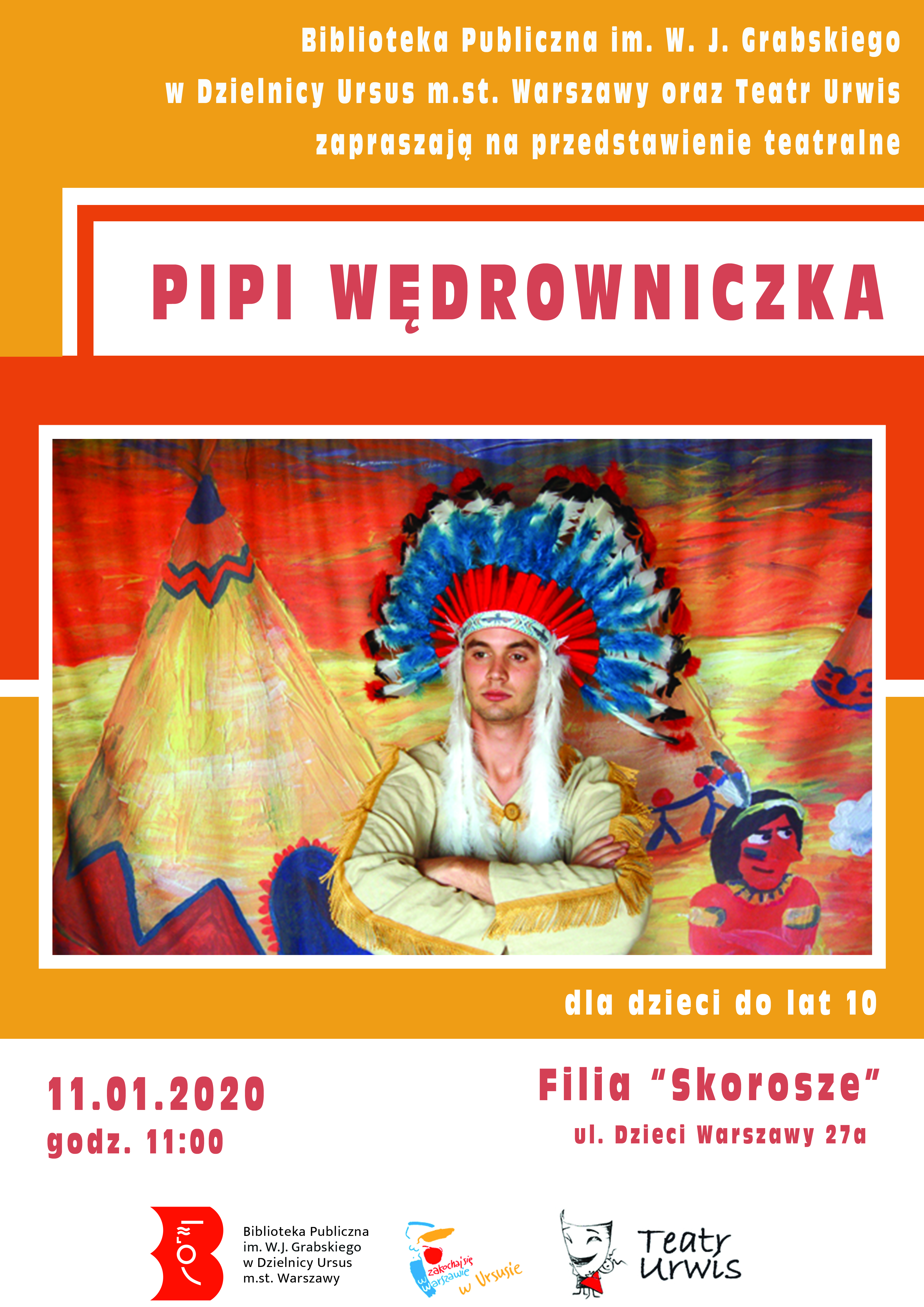 Biblioteka Publiczna w Dzielnicy Ursus serdecznie zaprasza wszystkie dzieci do lat 10 na przedstawienie Teatru Urwis „Pipi Wędrowniczka”.