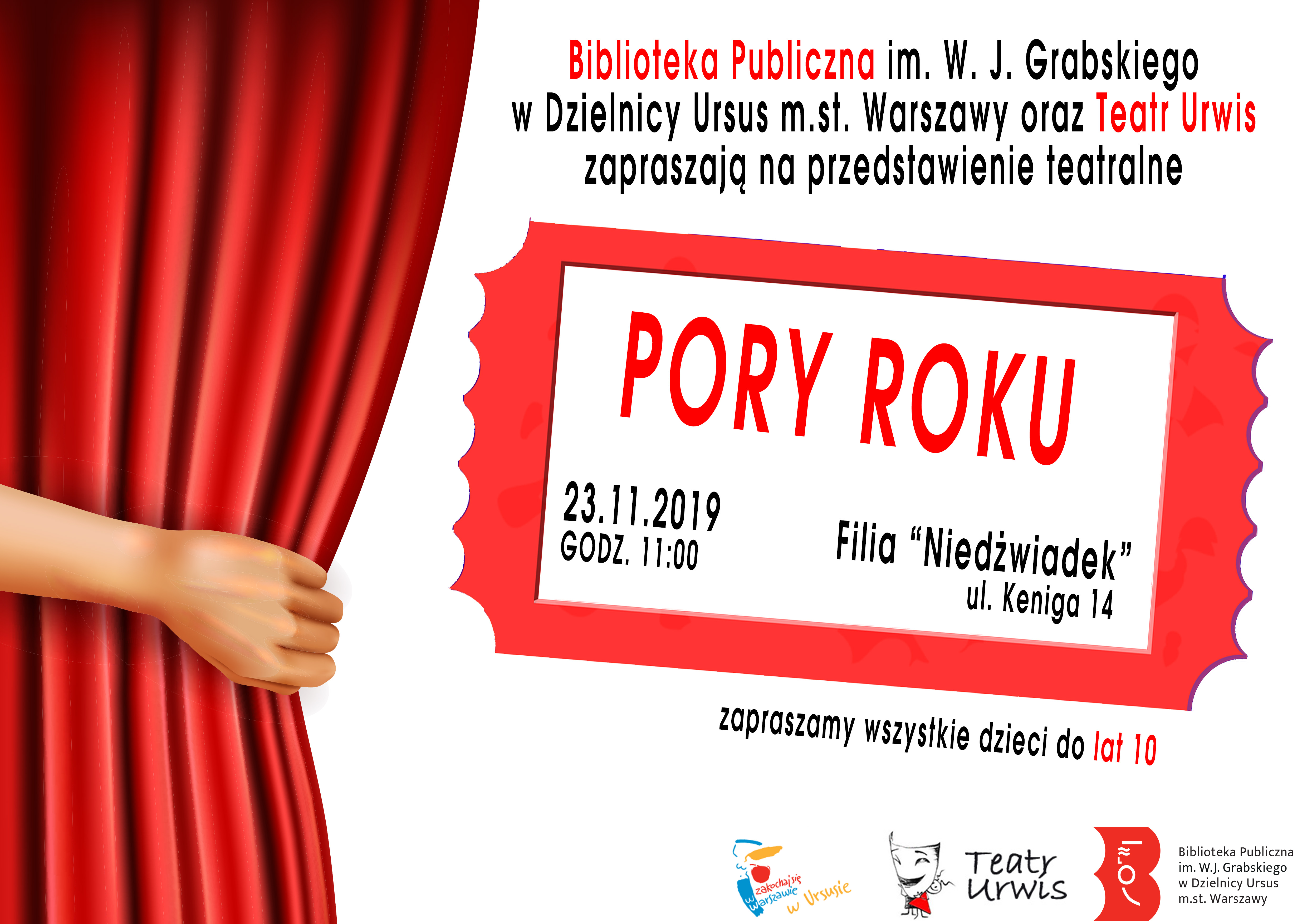Biblioteka Publiczna w Dzielnicy Ursus serdecznie zaprasza wszystkie dzieci do lat 10 na przedstawienie Teatru Urwis „Pory Roku”.