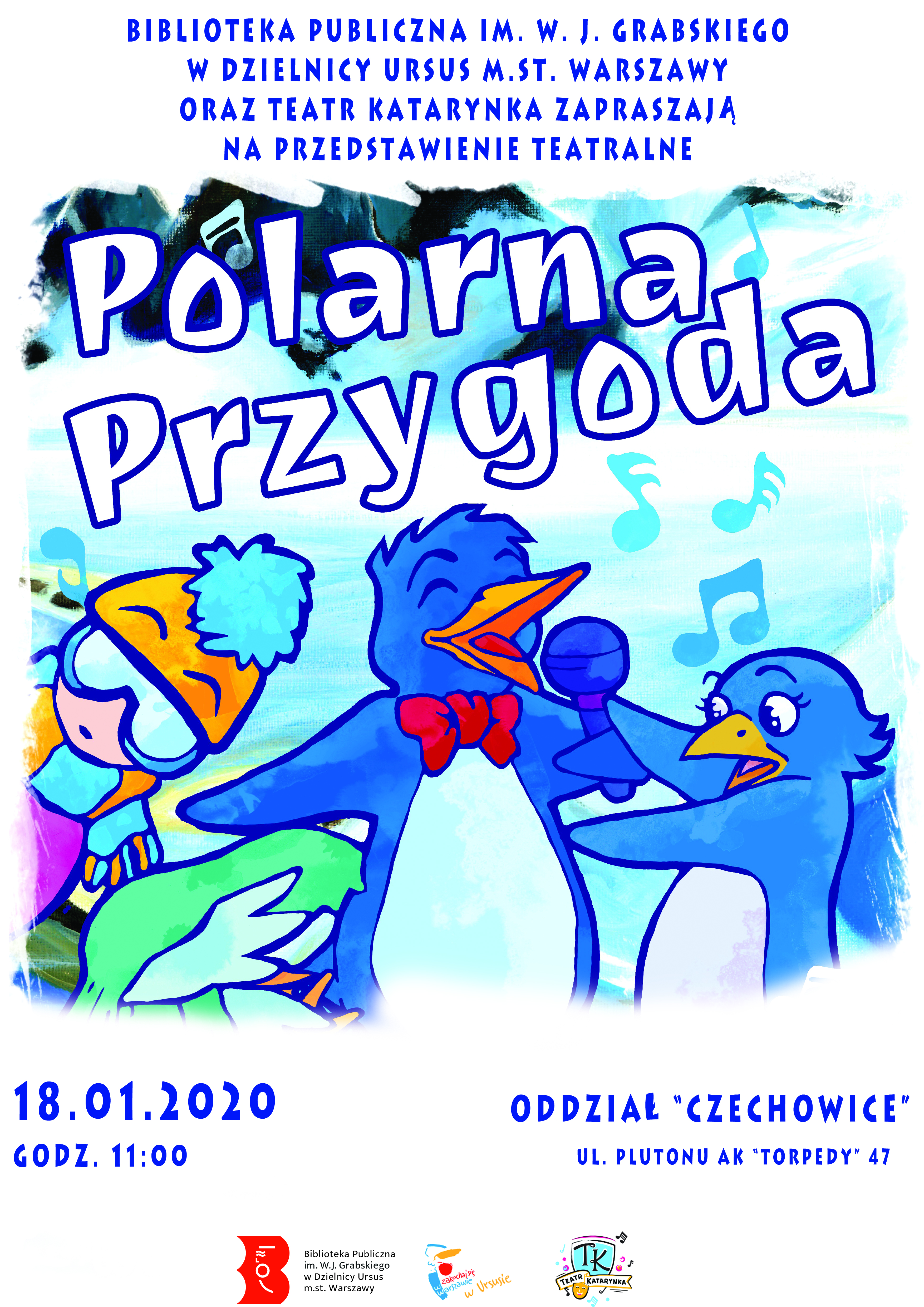 Biblioteka Publiczna w Dzielnicy Ursus serdecznie zaprasza wszystkie dzieci do lat 10 na przedstawienie Teatru Katarynka „Przygoda Polarna”.