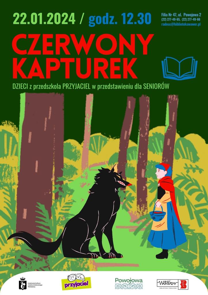 Serdecznie zapraszamy Seniorki i Seniorów na przepiękny spektakl pt. „Czerwony Kapturek” w wykonaniu małych (lecz WIELKICH🙂) artystów z przedszkola PRZYJACIEL.