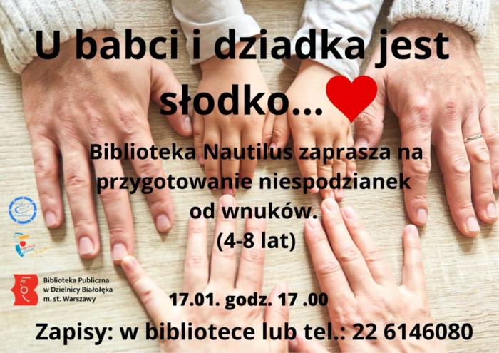Zapraszamy do Nautilusa na zajęcia dla dzieci, na których będziemy przygotowywać niespodzianki dla Babć i Dziadków, z okazji ich święta.