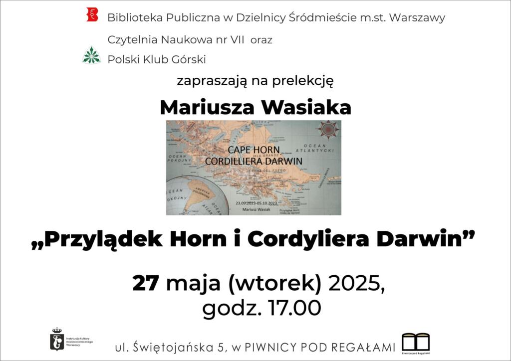 Czytelnia Naukowa Nr VII oraz Polski Klub Górski zapraszają 27 maja o godzinie 17:00 na prelekcję Mariusza Wasiaka pt. „Przylądek Horn