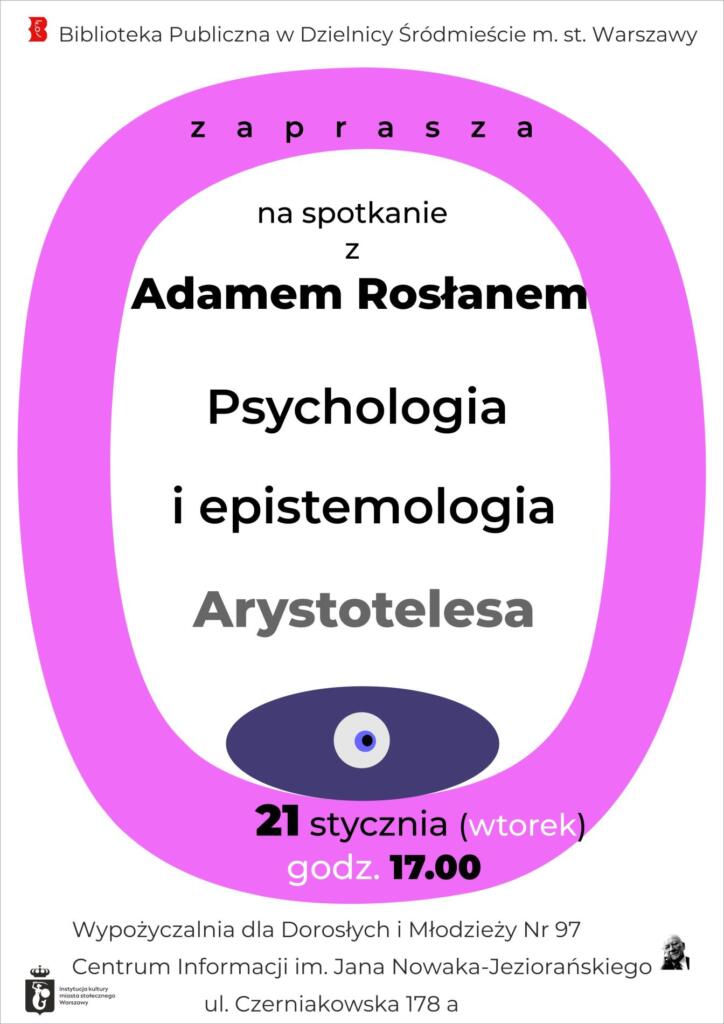 Biblioteka Publiczna w Dzielnicy Śródmieście m.st. Warszawy zaprasza na wykład Adama Rosłana pt. „Psychologia i epistemologia Arystotelesa”.