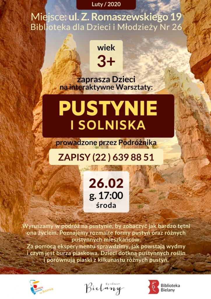 Biblioteka dla Dzieci i Młodzieży Nr 26 zaprasza na warsztaty z podróżnikiem pt. Pustynie i Solniska