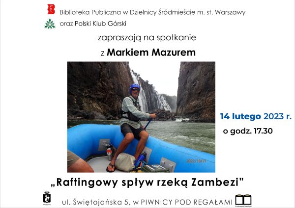 Czytelnia Naukowa z Polskim Klubem Górskim zapraszają 14 lutego o godzinie 17:30 na „Raftingowy spływ rzeką Zambezi”,