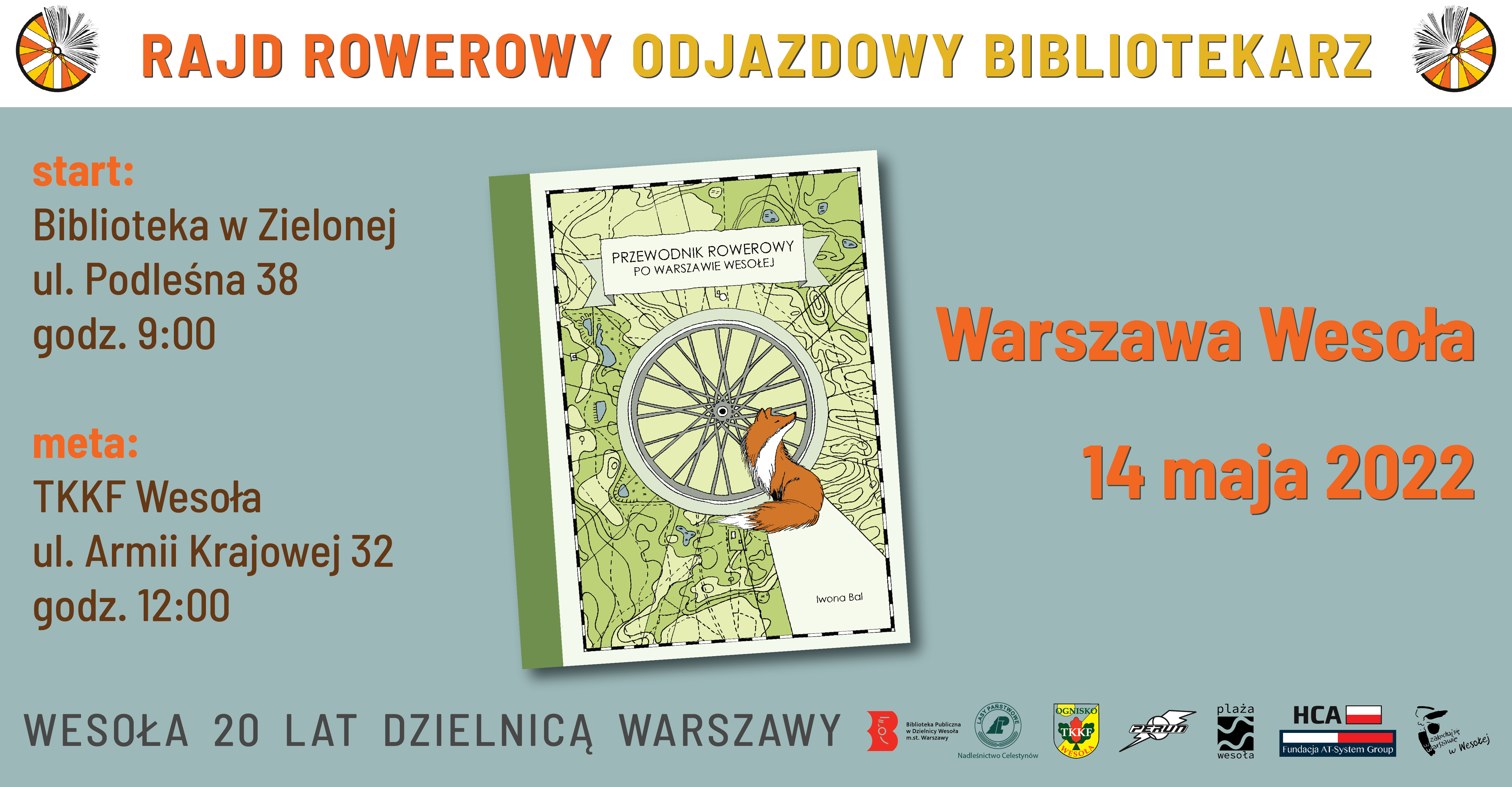 Cykliczny niegdyś rajd rowerowy Odjazdowy Bibliotekarz, po trzyletniej nieobecności, powraca na pełnych obrotach do Biblioteki w Wesołej. Spotykamy się w sobotę – 14 maja o godz. 9:00 przed budynkiem Biblioteki w Zielonej (ul. Podleśna 38). Po otrzymaniu pakietu startowego wyruszymy na trasę, która obejmie niemal całą Wesołą: Zielona – Stara Miłosna – Daków – i w końcu TKKF przy ul. Armii Krajowej, gdzie będzie miała miejsce meta rajdu. A na mecie, jak zawsze – wyjątkowe atrakcje dla całej rodziny: