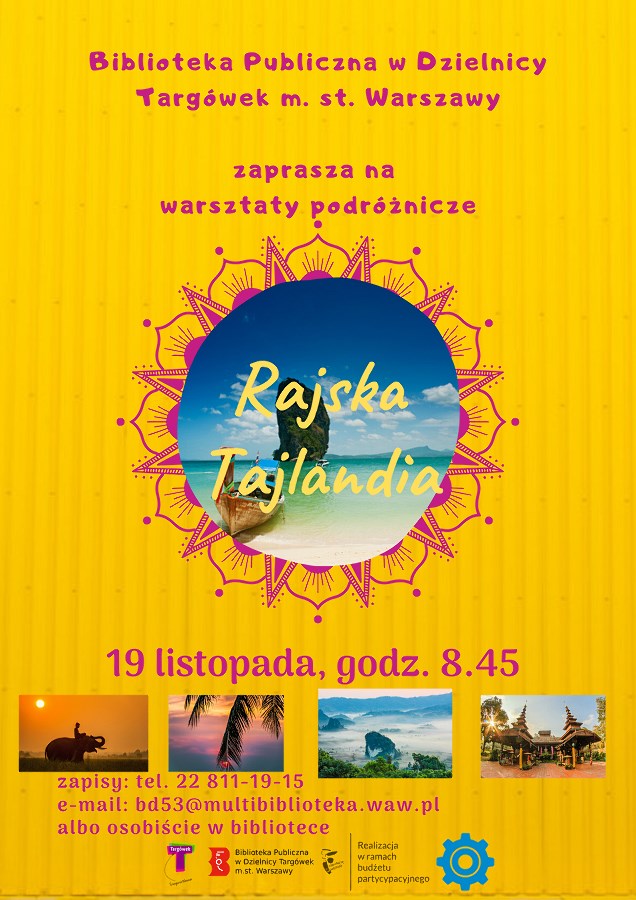 Biblioteka Publiczna w Dzielnicy Targówek m.st. Warszawy zaprasza na warsztaty podróżnicze „Rajska Tajlandia”.