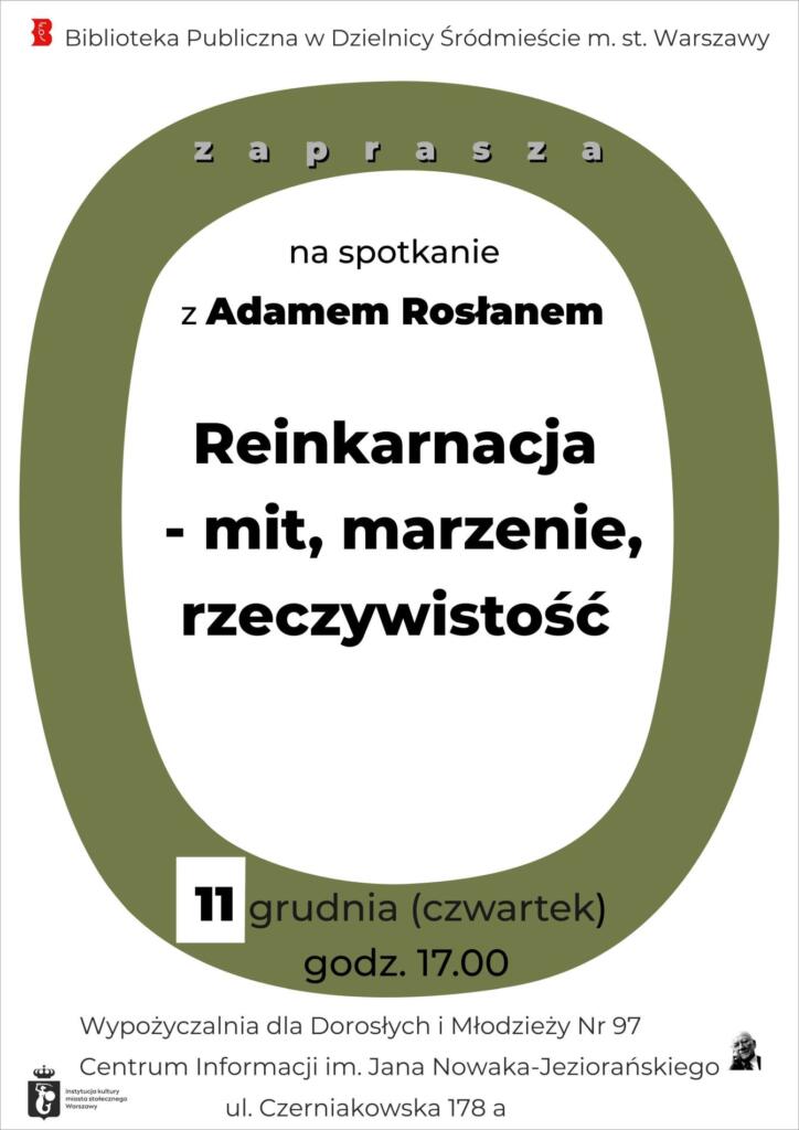 Biblioteka Publiczna w Dzielnicy Śródmieście m.st. Warszawy zaprasza na wykład Adama Rosłana pt. „Reinkarnacja – mit, marzenie, rzeczywistość”.