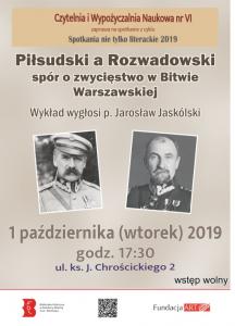 Już 1 października o godzinie 17:30 gościć będziemy p. Jarosława Jaskólskiego, który przedstawi nam wykład pt. „Piłsudski a Rozwadowski – spór o zwycięstwo w Bitwie warszawskiej”.