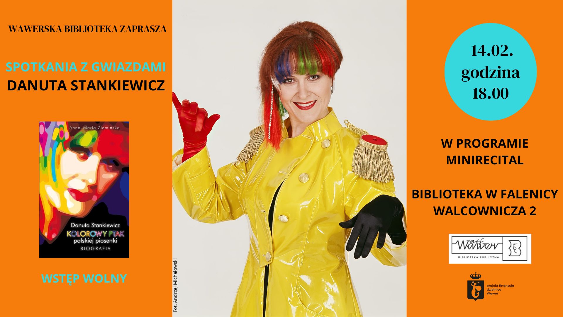 Z okazji Walentynek zapraszamy dorosłych mieszkańców Wawra i okolic na wyjątkowe Spotkanie z Gwiazdami czyli wieczór autorski i mini recital Danuty Stankiewicz.