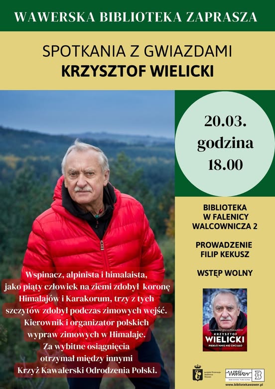 Serdecznie zapraszamy na spotkanie z Krzysztofem Wielickim, Człowiekiem-Legendą, jednym z najwybitniejszych wspinaczy w historii himalaizmu i jednym z ostatnich „Lodowych Wojowników”.