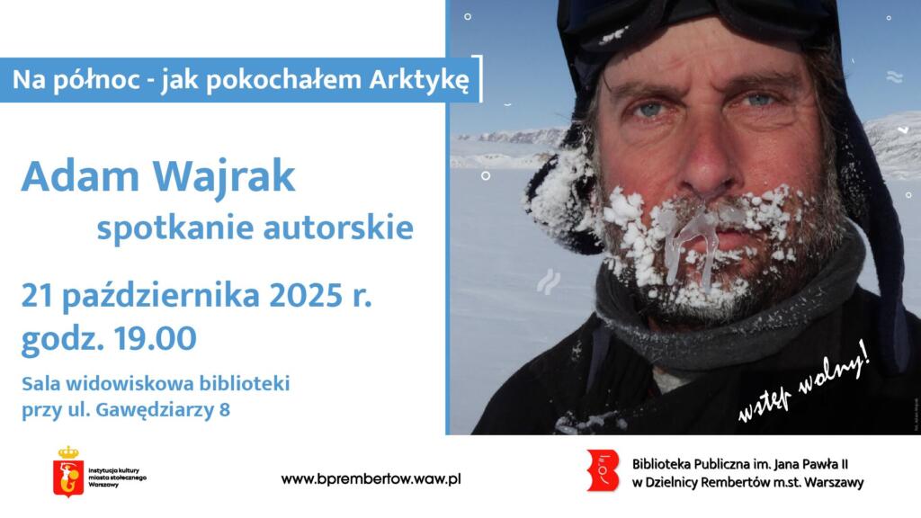 Podczas wydarzenia autor zaprezentuje swoją książkę oraz fotografie z podróży na Północ. Wajrak od lat pisze o przyrodzie, a jego reportaże i książki kształtują wrażliwość ekologiczną wielu pokoleń. Spotkanie w Rembertowie to okazja, by zobaczyć Grenlandię oczami jednego z najważniejszych polskich przyrodników.