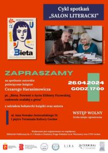 Biblioteka Publiczna im. Z. J. Rumla w Dzielnicy Praga-Południe wraz z gocławskim Uniwersytetem Trzeciego Wieku zapraszają na spotkanie autorskie z Cezarym Harasimowiczem, które odbędzie się w ramach cyklu „Salon literacki”. Autor opowie o swojej książce. pt. „Bieta. Powieść o Elżbiecie Ficowskiej, cudowanie ocalałej z getta”. W wydarzeniu weźmie również udział bohaterka książki – Elżbieta Ficowska. Spotkanie odbędzie się w piątek 26 kwietnia o godz. 17:00 w sali dydaktycznej w siedzibie głównej Biblioteki przy ul. Nowaka-Jeziorańskiego 24. Wstęp wolny.