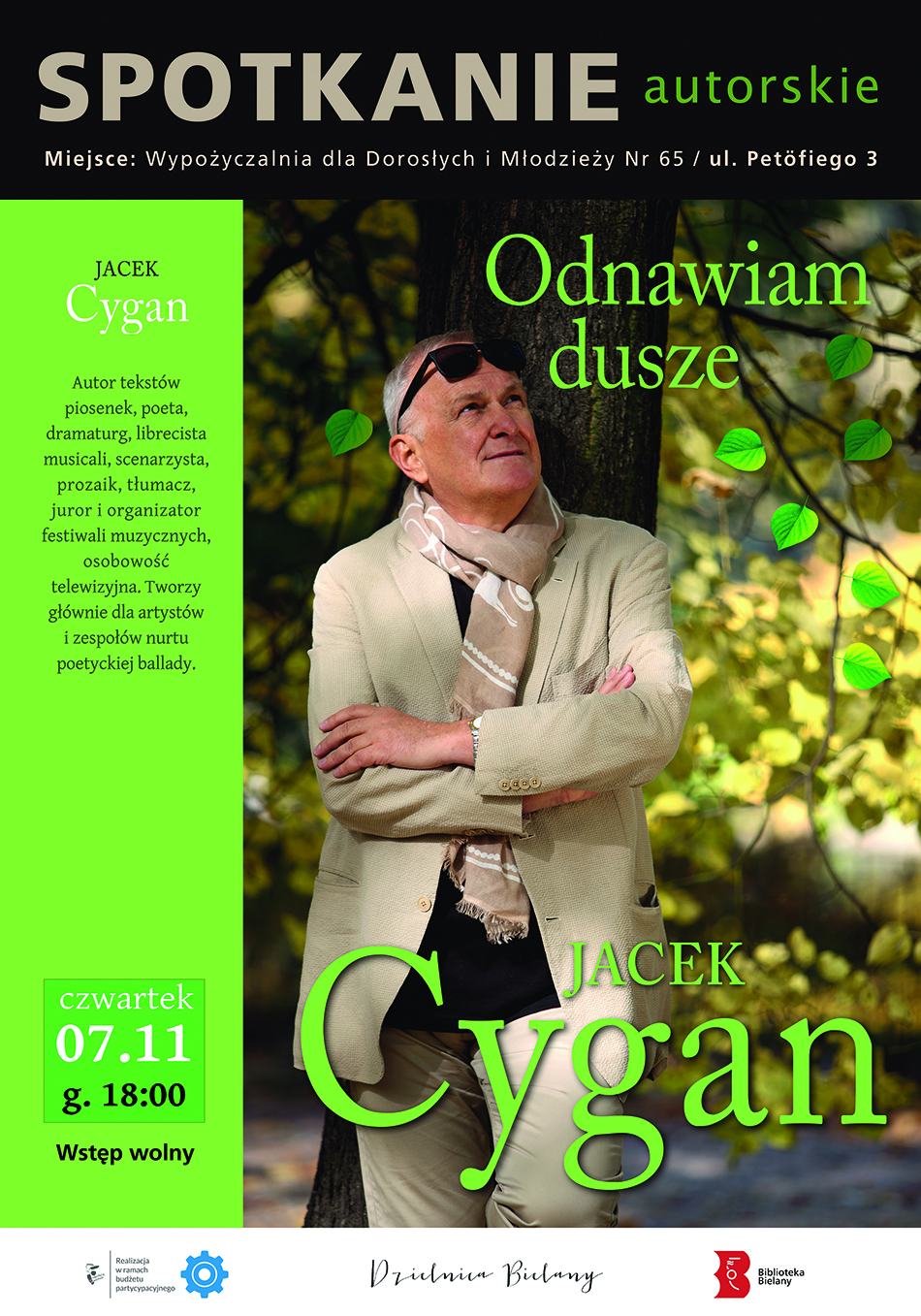 Zapraszamy na spotkanie autorskie z Jackiem Cyganem do Wypożyczalni dla Dorosłych i Młodzieży Nr 65 przy ul. Petofiego 3.