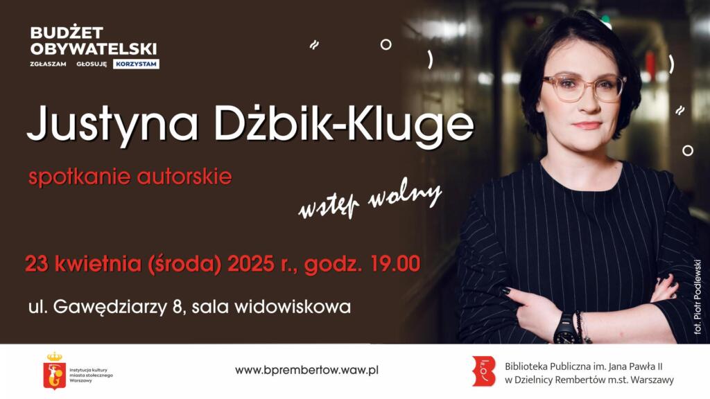 Justyna Dżbik-Kluge, dziennikarka radiowo-telewizyjna oraz reportażystka spotka się z czytelnikami biblioteki 23 kwietnia o godzinie 19.00.