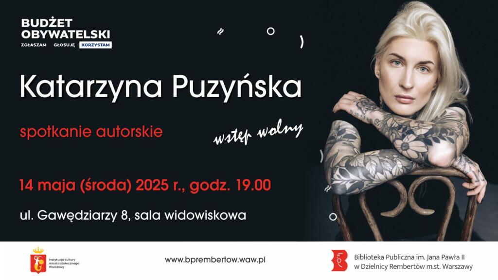 Katarzyna Puzyńska, jedna z najbardziej rozpoznawalnych autorek polskich kryminałów, odwiedzi rembertowską bibliotekę 14 maja o godzinie 19.00. Opowie o swojej twórczości i pasjach. Spotkanie poprowadzi Natalia Pietkiewicz-Szwarc. Wstęp wolny.