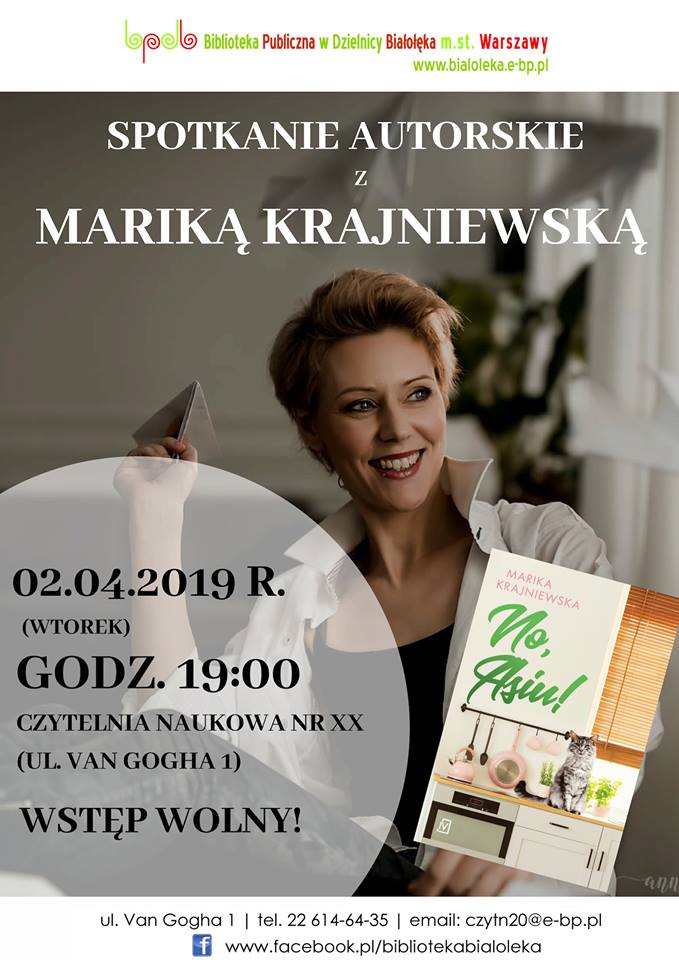 Bardzo się cieszymy, kiedy możemy wspierać mieszkańców naszej dzielnicy! Serdecznie zapraszamy na spotkanie autorskie z Mariką Krajniewską.