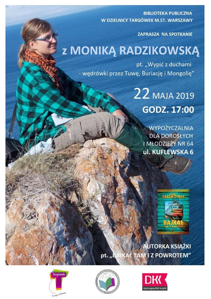 Biblioteka Publiczna w Dzielnicy Targówek m.st. Warszawy zaprasza na spotkanie z Moniką Radzikowską pt. „Wypić z duchami – wędrówki przez Tuwę, Buriację i Mongolię”.
