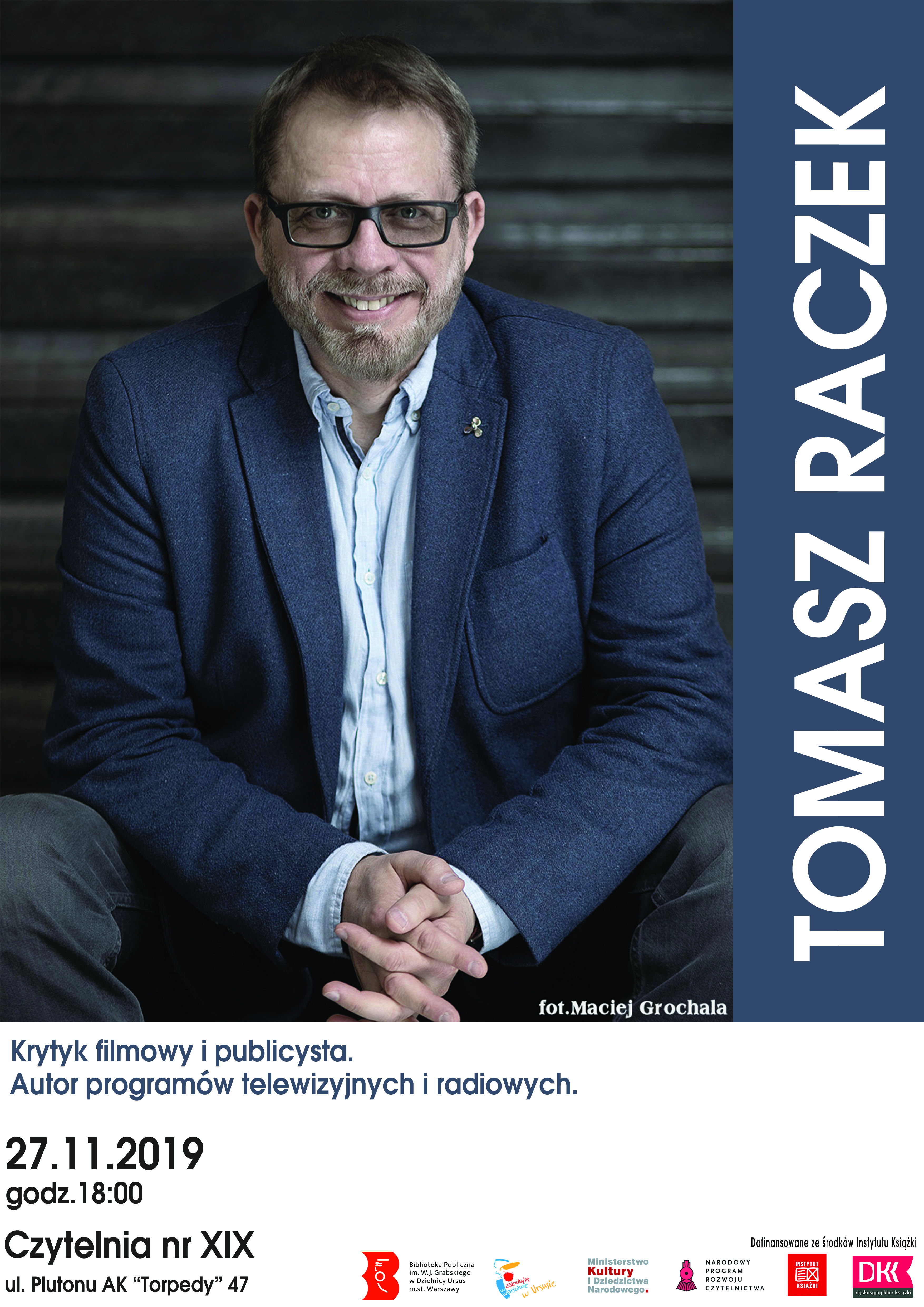 Biblioteka Publiczna w Dzielnicy Ursus serdecznie zaprasza na spotkanie autorskie z Tomaszem Raczkiem – krytykiem filmowym i publicystą, autorem programów telewizyjnych i radiowych. Jako krytyk współpracował ze stacjami telewizyjnymi: TVP1, TVP2, Canal+, Kino Polska, nFilm HD, nFilm HD 2; a także stacjami radiowymi: Polskie Radio, Tok FM, RMF FM.