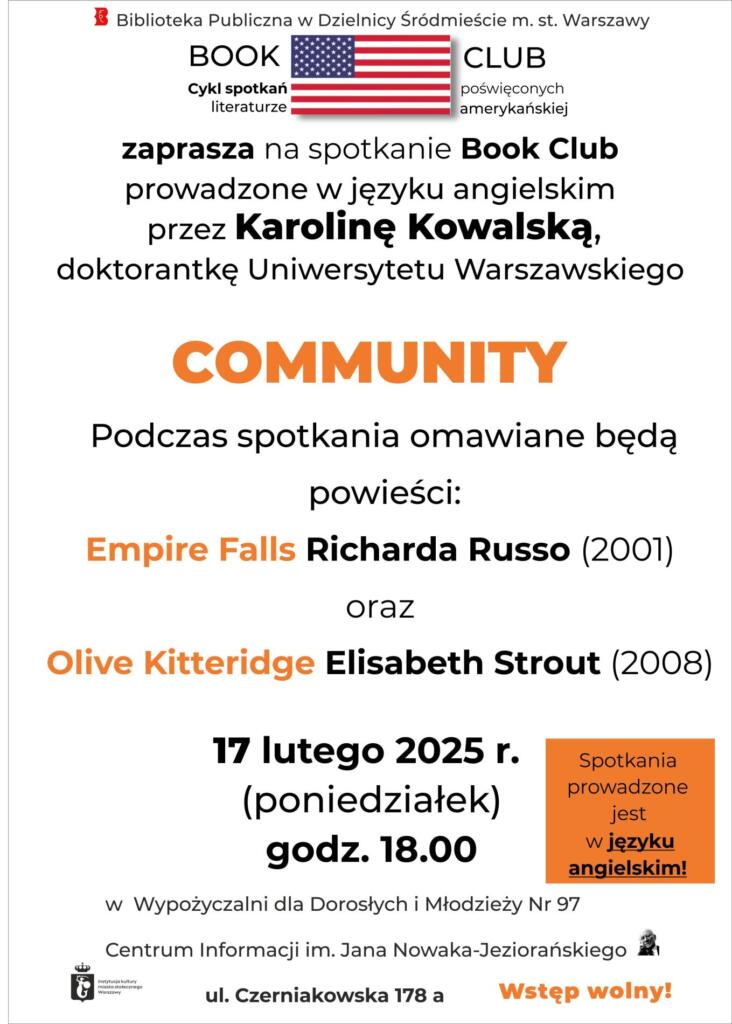Biblioteka Publiczna w Dzielnicy Śródmieście m.st. Warszawy zaprasza na spotkanie Book Club prowadzone w języku angielskim przez