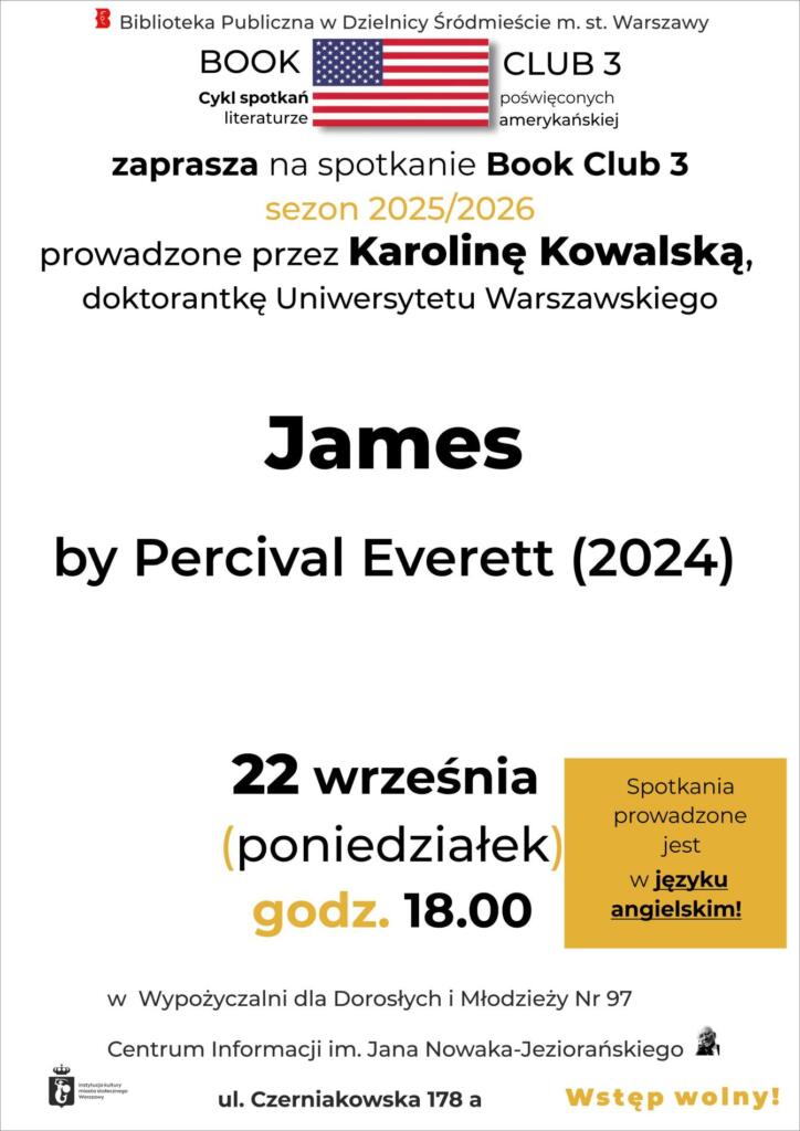 Podczas spotkania omawiana będzie książka „James” by Percival Everett (2024).