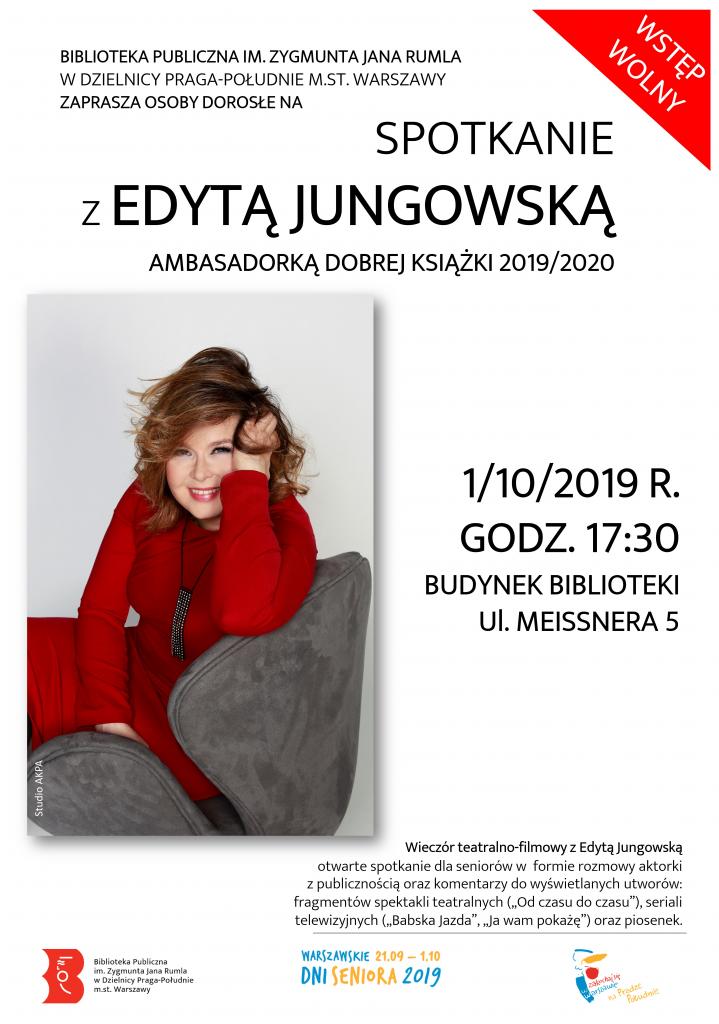 Biblioteka Publiczna im. Zygmunta Jana Rumla w Dzielnicy Praga-Południe m.st. Warszawy zaprasza na wieczór teatralno-filmowy z aktorką Ambasadorką Dobrej Książki 2019/2020 – Edytą Jungowską.