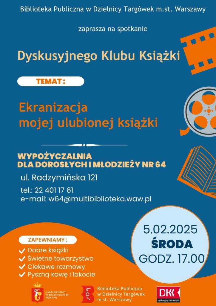 Zapraszamy na spotkanie Dyskusyjnego Klubu Książki: „Ekranizacja mojej ulubionej książki”.