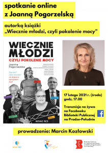 Zapraszamy serdecznie na spotkanie online z Joanną Pogorzelską, autorką książki „Wiecznie młodzi, czyli pokolenie mocy”.