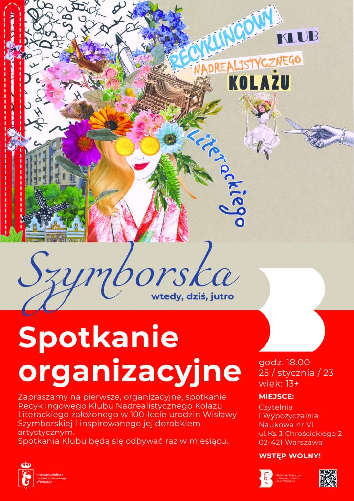 W środę 25 stycznia 2023 o godz. 18.00 zapraszamy młodzież powyżej 13 r.ż. oraz dorosłych do Czytelni i Wypożyczalni Naukowej nr VI na pierwsze, organizacyjne, spotkanie Recyklingowego Klubu Nadrealistycznego Kolażu Literackiego. Klub ten powstaje w 100-lecie urodzin Wisławy Szymborskiej a inspiracją do jego powołania jest dorobek artystyczny noblistki. Celem środowego spotkania będzie poznanie się i ustalenie zasad funkcjonowania.
