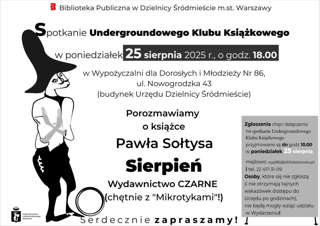 25 sierpnia o godzinie 18:00 na spotkanie Undergroundowego Klubu Książkowego. Porozmawiamy o książce „Sierpień” Pawła Sołtysa.