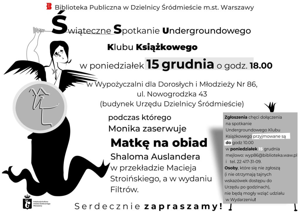 w poniedziałek 15 grudnia o godzinie 18:00 na świąteczne spotkanie Undergroundowego Klubu Książkowego.