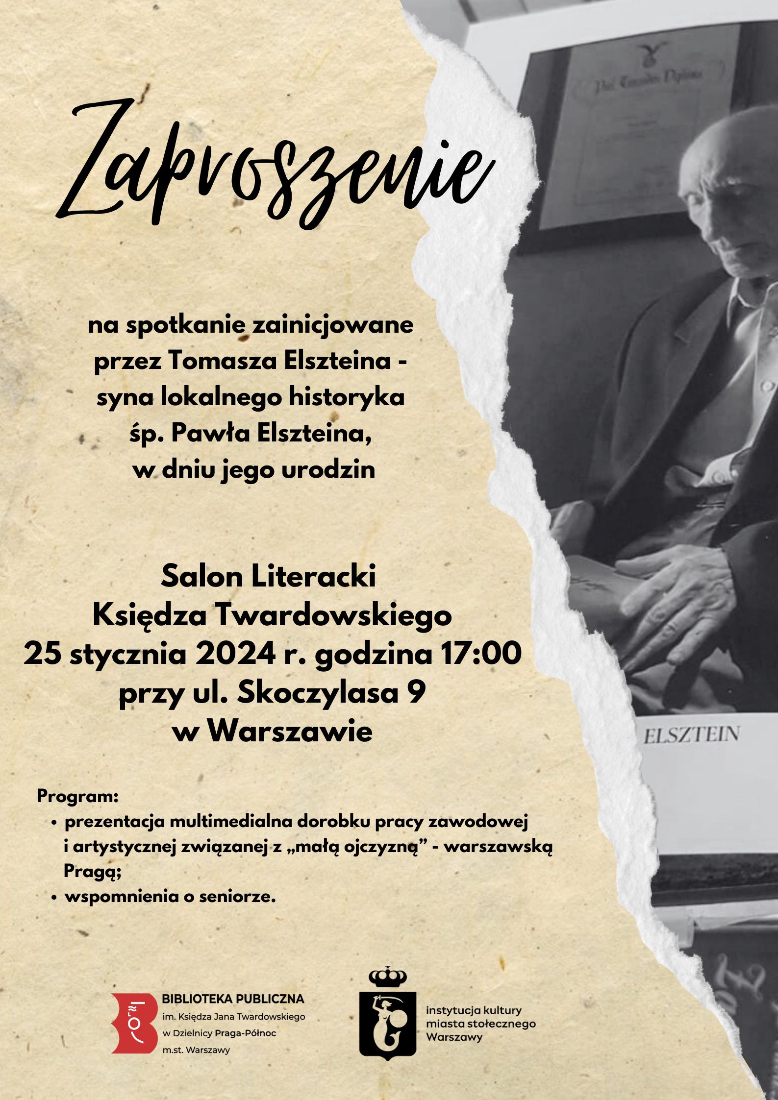 Zapraszamy na spotkanie zainicjowane przez Tomasza Elszteina – syna lokalnego historyka śp. Pawła Elszteina, w dniu jego urodzin.