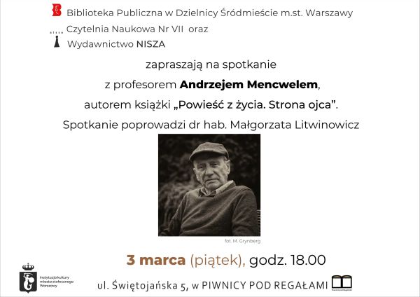 Czytelnia Naukowa Nr VII oraz Wydawnictwo „Nisza” zapraszają na spotkanie z prof. Andrzejem Mencwelem, autorem książki