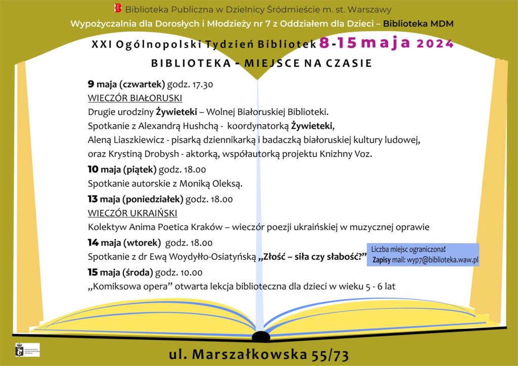 Liczba miejsc ograniczona. Zapisy pod adresem e-mail: wyp7@biblioteka.waw.pl