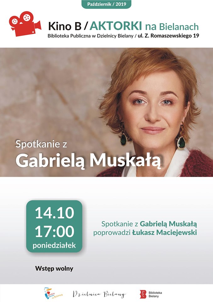 Serdecznie zapraszamy na spotkanie z aktorką Gabrielą Muskałą w ramach projektu „Aktorki na Bielanach”. Spotkanie poprowadzi Łukasz Maciejewski – krytyk filmowy i teatralny.
