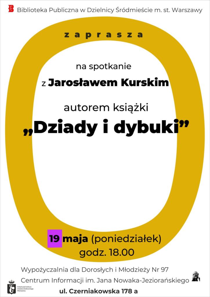 Biblioteka Publiczna w Dzielnicy Śródmieście m.st. Warszawy zaprasza na spotkanie z Jarosławem Kurskim, autorem książki „Dziady i dybuki”.
