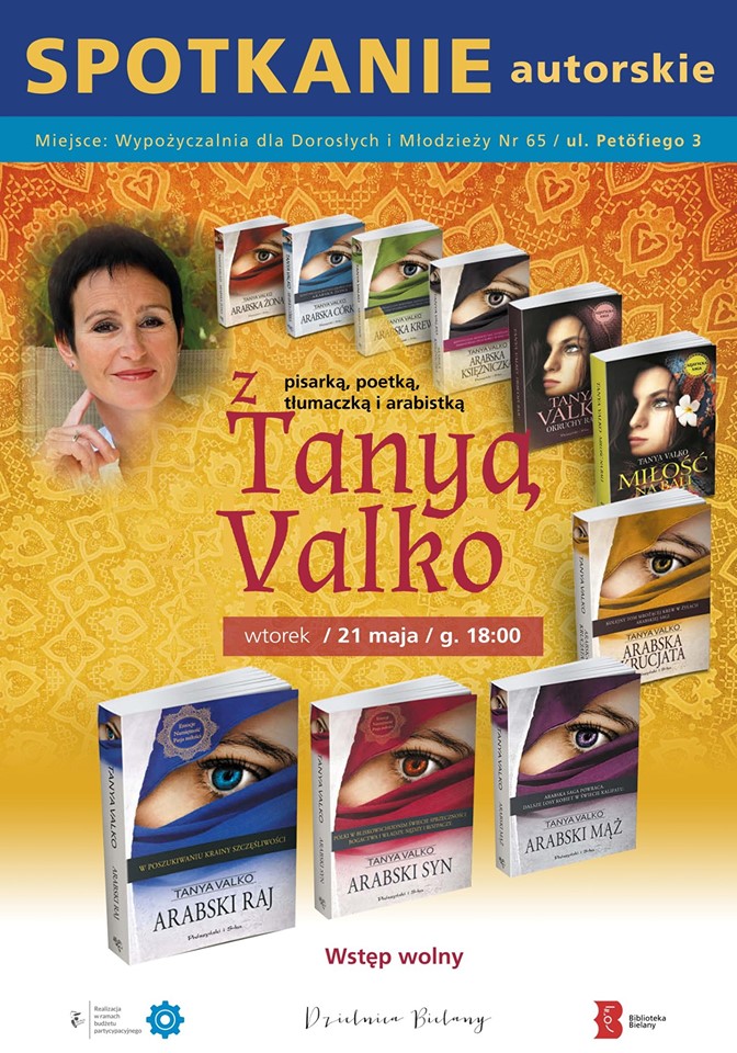 Wypożyczalnia dla Dorosłych i Młodzieży Nr 65, przy ul. Petofiego 3 zaprasza na spotkanie z Tanyą Valko – pisarką, poetką, tłumaczką i arabistką.