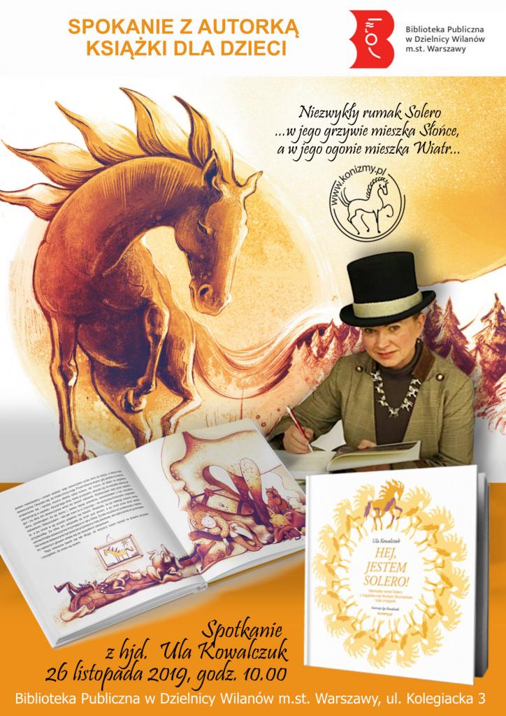 26 listopada (wtorek) o godzinie 10:00 zapraszamy na ul. Kolegiacką 3 na literacką podróż z Ulą Kowalczuk. Miłośniczka koni opowie nam o przygodach niezwykłego rumaka Solero, mieszkańca Krainy Wiecznie Zielonych Pastwisk. Przemierza on czasoprzestrzeń, by pomagać innym koniom i przeżywać wspólnie z nimi przygody. Bohater książki „Hej, jestem Solero!” będzie punktem wyjścia w naszej dyskusji. Porozmawiamy o empatii, kontakcie z naturą, przyjacielskich relacjach i radości.