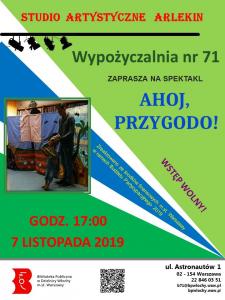 Wraz ze Studiem Artystycznym Arlekin zapraszamy wszystkie dzieci w wieku przedszkolnym na spektakl zatytułowany „Ahoj, przygodo!”.