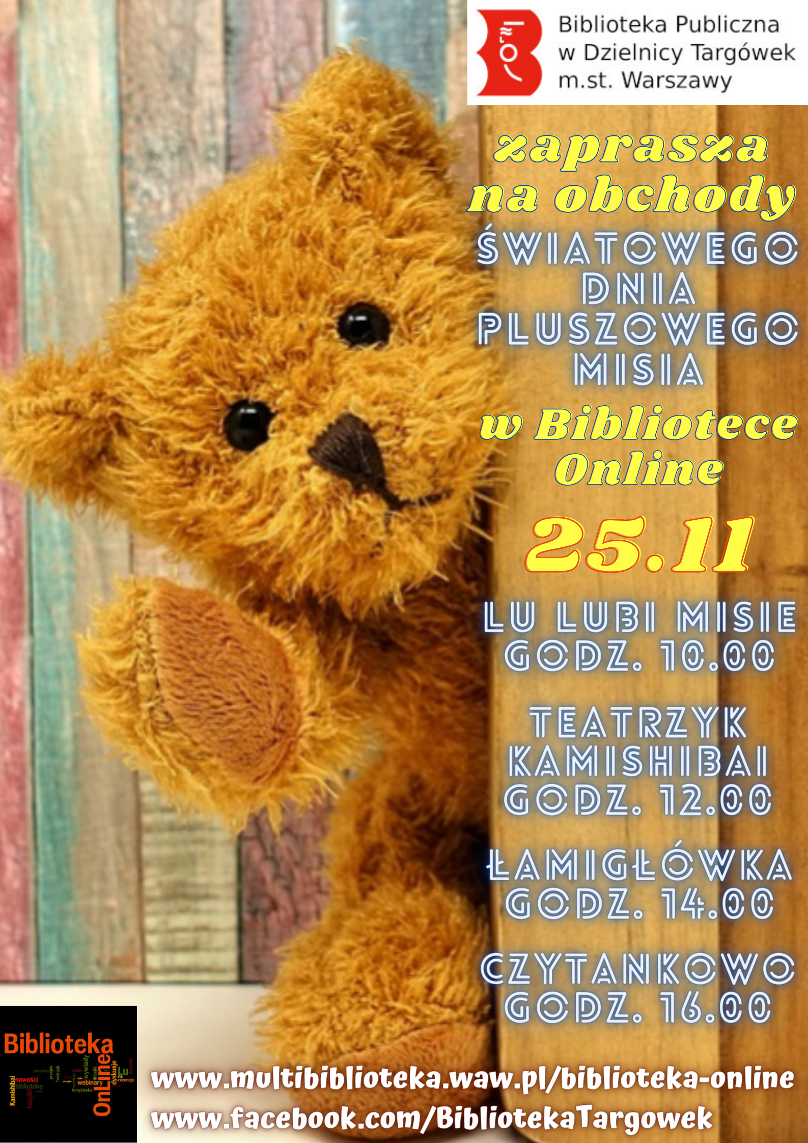 Biblioteka Publiczna w Dzielnicy Targówek m.st. Warszawy serdecznie zaprasza na obchody Światowego Dnia Pluszowego Misia.
